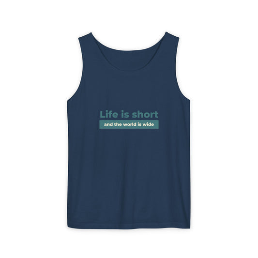 Life Is Short Unisex Garment-Dyed Tank Top, Summer Style, Casual Wear, Gifts for Him, Athleisure, Relaxed Fit