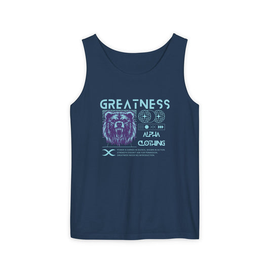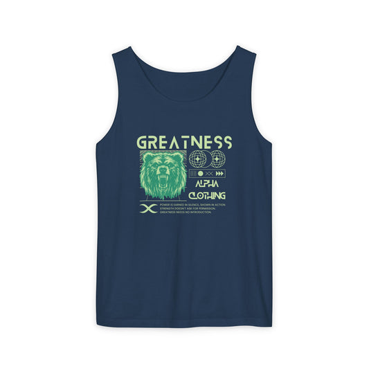 Greatness (Green) Unisex Garment-Dyed Tank Top, Summer Style, Casual Wear, Gifts for Him, Athleisure, Relaxed Fit