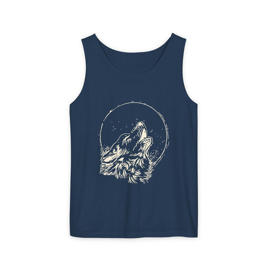 Howling Wolf Unisex Garment-Dyed Tank Top, Summer Style, Casual Wear, Gifts for Him, Athleisure, Relaxed Fit