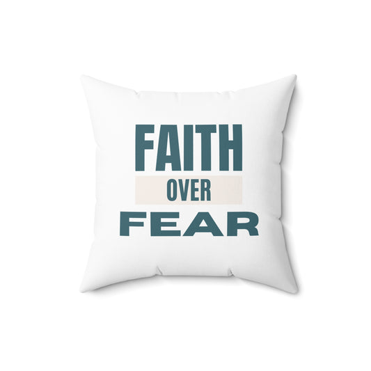 Faith over Fear Soft & Durable Square Pillow – Plush Polyester Cushion for Home & Office Decor