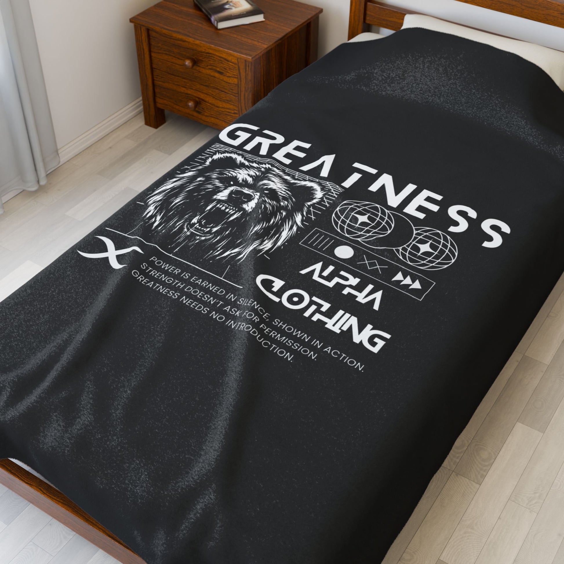 Greatness(White) Velveteen Plush Blanket | Cozy Throw, Inspirational Home Décor, Motivational Gift, Relaxation Blanket