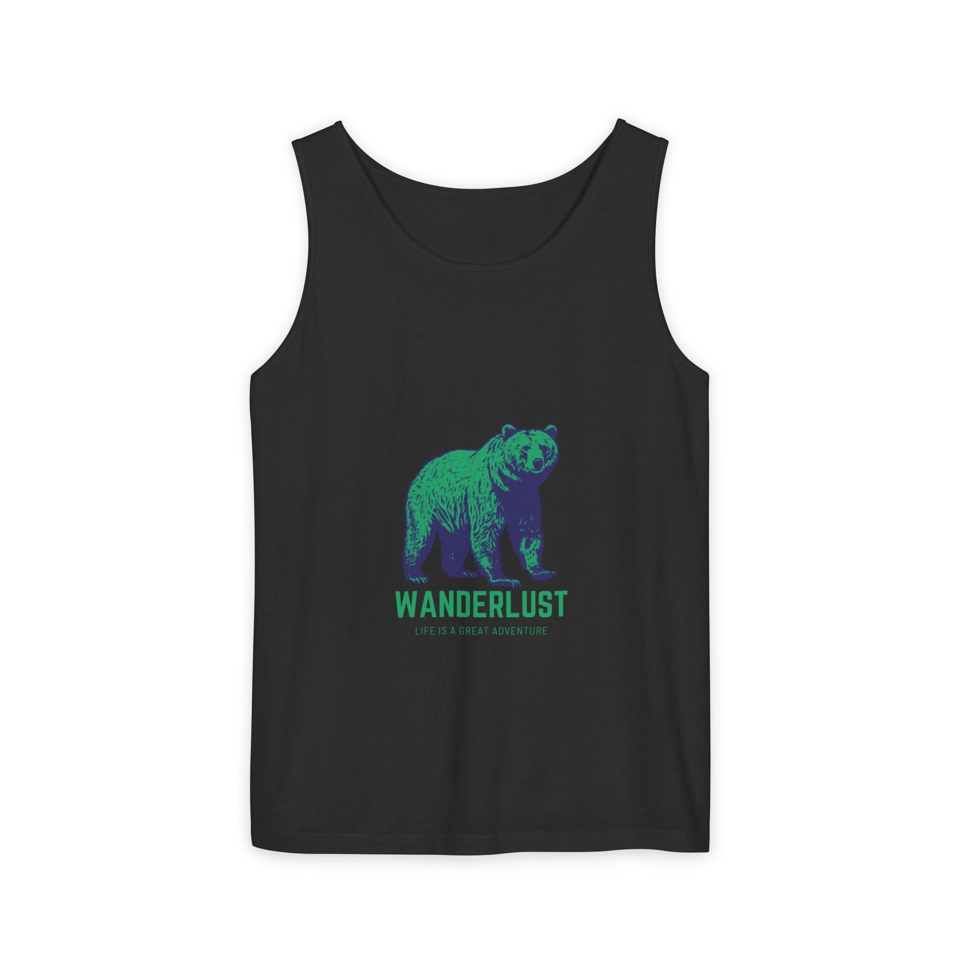 Wanderlust (Green) Unisex Garment-Dyed Tank Top, Summer Style, Casual Wear, Gifts for Him, Athleisure, Relaxed Fit